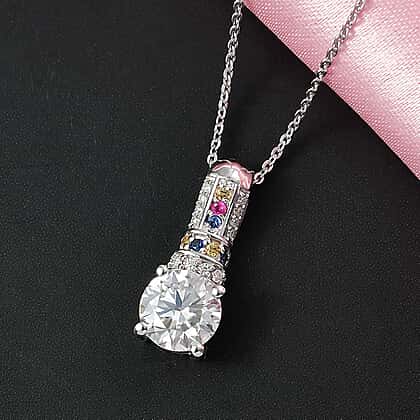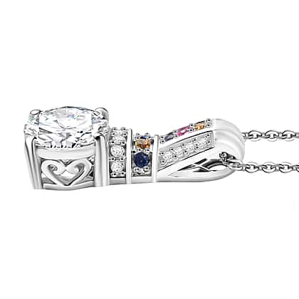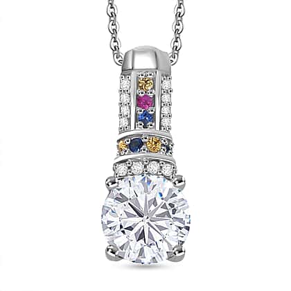 D'Joy Moissanite & Multi Sapphire Pendant with Chain (Size 20) in Rhodium Overlay Sterling Silver 1.67 Ct.