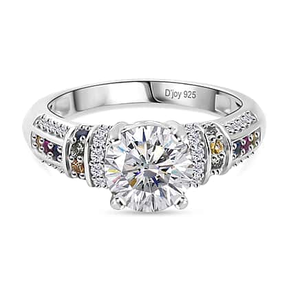 D'Joy Moissanite & Multi Sapphire Ring in Rhodium Overlay Sterling Silver 1.79 Ct.