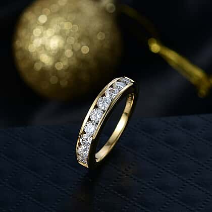 Discover the brilliance of the moissanite with this fascinating ring, featuring a row of moissanite gemstones set along the band. This ring offers exceptional sparkle and beauty. The stones reflect light beautifully, creating a captivating shine. Crafted in 925 sterling silver with 18K yellow gold plating, this piece is designed for durability and style, with a premium yellow gold tone that adds beauty and a luxurious finish. Perfect for engagements or adding a refined touch to any jewellery collection, this ring combines modern sophistication with timeless appeal.