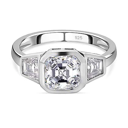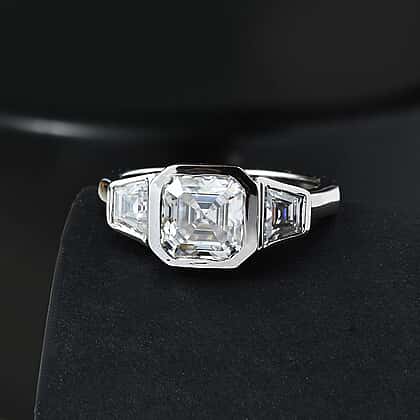 Moissanite Ring in Platinum Overlay Sterling Silver 2.38 Ct.