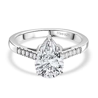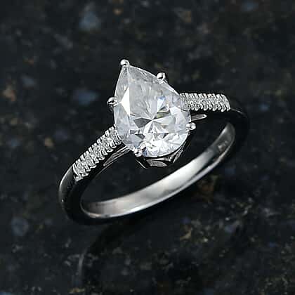 D'Joy Moissanite Ring in Rhodium Overlay Sterling Silver 1.88 Ct.