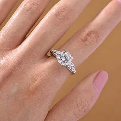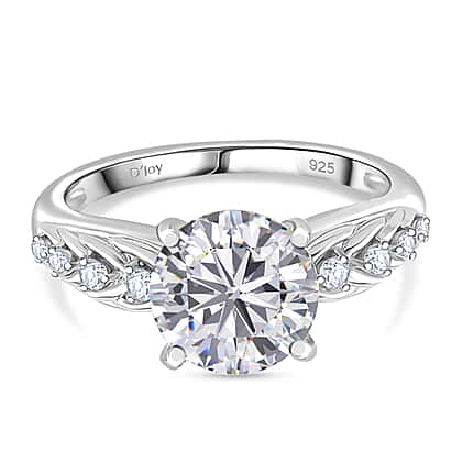 D'Joy Moissanite Ring in Rhodium Overlay Sterling Silver 3.89 Ct.