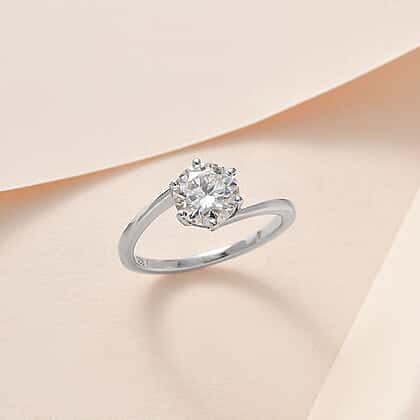 D'Joy Moissanite Solitaire Bypass Ring in Platinum Overlay Sterling Silver 1.21 Ct.