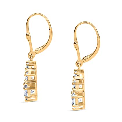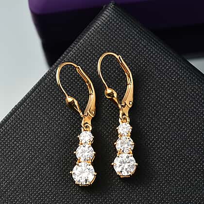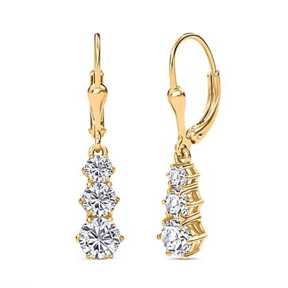 D'joy Moissanite Solitaire Lever Back Earring in 14K Yellow Gold Plating Sterling Silver 1.50 Ct.