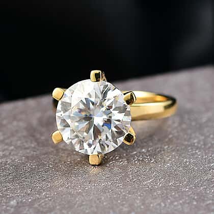 D'Joy Moissanite Solitaire Ring in 18K YG VermeilSterling Silver 5.275 Ct.