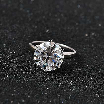 Brimming with fresh sparkles, this 5Ct. moissanite round-cut solitaire ring is designed to capture attention. The round stone is beautifully showcased in a classic six-prong setting, allowing every facet to catch the light. Its impressive 5 Ct. size is balanced by a band of hypoallergenic sterling silver with platinum overlay that’s resistant to tarnish and comfortable for daily wear. With fire and clarity that rival natural diamonds, this ring feels luxurious yet effortless, making it a standout choice for anyone who loves a bold, radiant centrepiece.