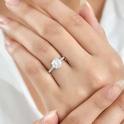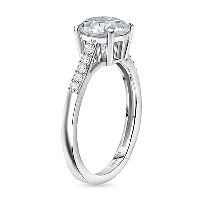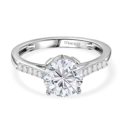 D'Joy Moissanite Solitaire Ring in Platinum OverlaySterling Silver 1.695 Ct.