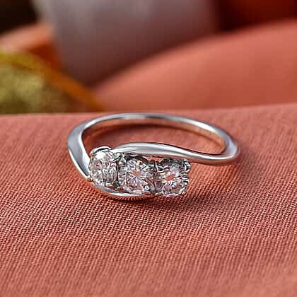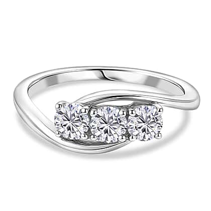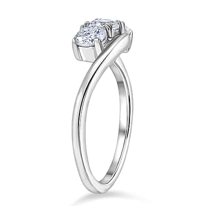 D'Joy Moissanite Trilogy Bypass Round Ring in Platinum Overlay Sterling Silver