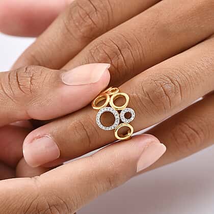 D'Joy Moissanite Two-Tone Bubble Ring in Yellow Gold Plated Sterling Silver