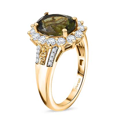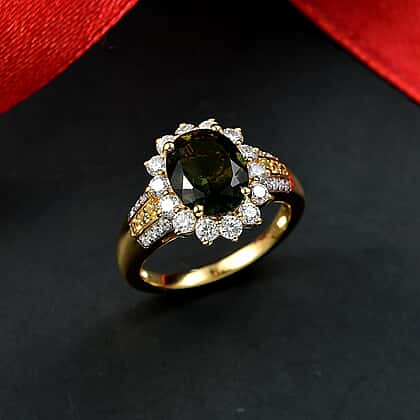 D'Joy Moldavite, Yellow Sapphire & Moissanite Ring in 18K Vermeil Yellow Gold Plated Sterling Silver 2.99 Ct.
