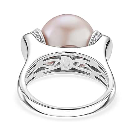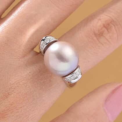 D'joy Multi Colour Edison Pearl (13-14mm), Moissanite Ring in Rhodium Overlay Sterling Silver 16.35 Ct.