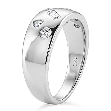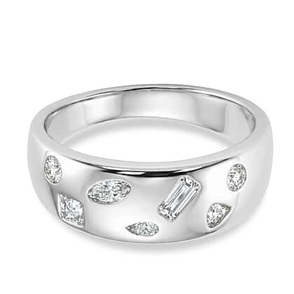 D'Joy Multi Cut Moissanite Wide Band Ring in Rhodium Overlay Sterling Silver