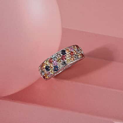 D'Joy Multi Sapphire Ring in Rhodium OverlaySterling Silver 1.780 Ct.