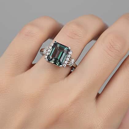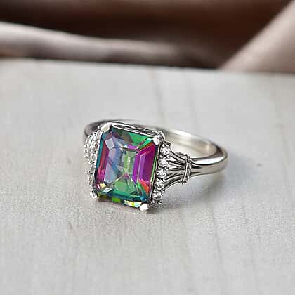 D'Joy Mystic Topaz & White Zircon Ring in Rhodium Overlay Sterling Silver 4.47 Ct.