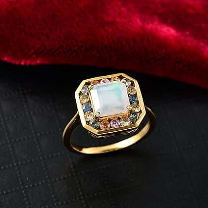 Djoy Natural Ethiopian Welo Opal & Multi Sapphire Garden of Light Ring in 18K Vermeil Yellow Gold Sterling Silver 2.38 Ct.