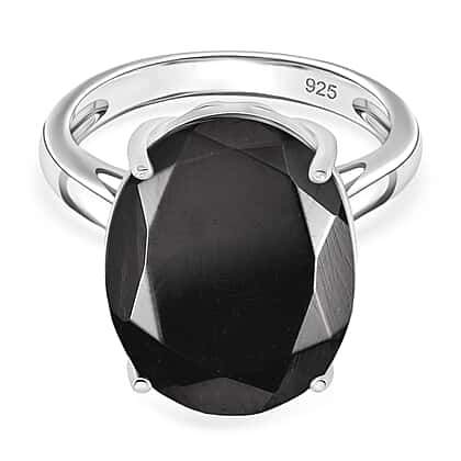 D'Joy Natural Shungite Solitaire Ring in Rhodium Overlay Sterling Silver 11.50 Ct.