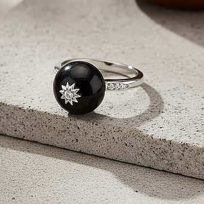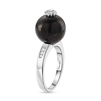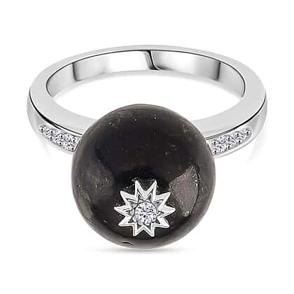 D'Joy Natural Shungite & White Zircon Ring in Rhodium Overlay Sterling Silver 11.66 Ct.