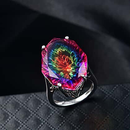 D'Joy Nebula Quartz Doublet Solitaire Ring in Rhodium Overlay Sterling Silver 21.84 Ct.