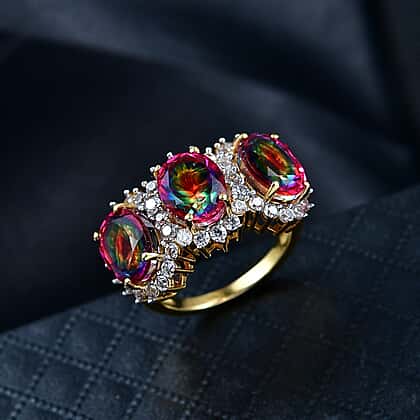 D'Joy Nebula Quartz Doublet & White Zircon Ring in 18K Yellow Gold Plated Sterling Silver 7.65 Ct.