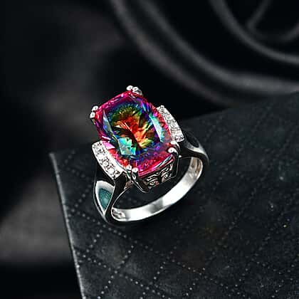 D'Joy Nebula Quartz Doublet & White Zircon Ring in Rhodium Overlay Sterling Silver 8.04 Ct.