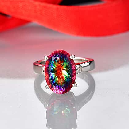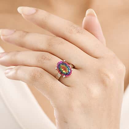D'Joy Nebula Quartz Doublet & White Zircon Solitaire Ring in Rhodium Overlay Sterling Silver 7.20 Ct.