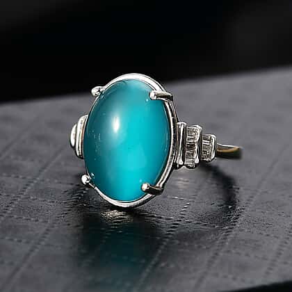 D'Joy Paraiba Moonstone & Natural Diamond Ring in Rhodium Overlay Sterling Silver 6.53 Ct.