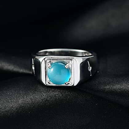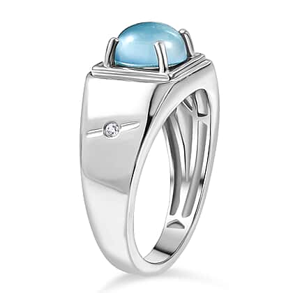 D'Joy Paraiba Moonstone & White Zircon Mens Ring in Platinum Overlay Sterling Silver 2.16 Ct, Silver Wt. 5.20 Gms.