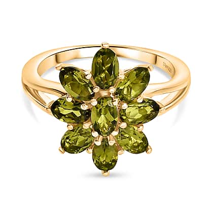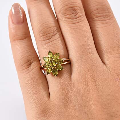 D'joy Natural Hebei Peridot Bloom Ring in 18K Yellow Gold Plated Sterling Silver 2.07 Ct.