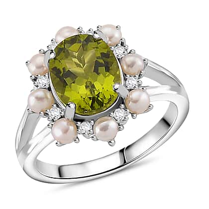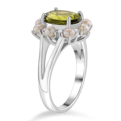 D'Joy Peridot, White Pearl & Moissanite Ring in Rhodium Overlay Sterling Silver 3.90 Ct.