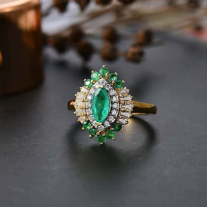 This ring radiates refined luxury with a deep green premium emerald at its heart, dazzlingly bordered by brilliant moissanite stones. Moissanite is known for its brilliance and fiery shine that resembles real diamonds, enhancing the beauty of the mainstone. Crafted in 18K vermeil yellow gold-plating on 925 sterling silver, the design captures the essence of sophistication while offering vibrant colour and unmatched sparkle. Lightweight yet hypoallergenic, the ring is safe and secure for sensitive skin. Robust craftsmanship and an enduring design make this an ideal statement piece for both cherished occasions and elevated daily style.