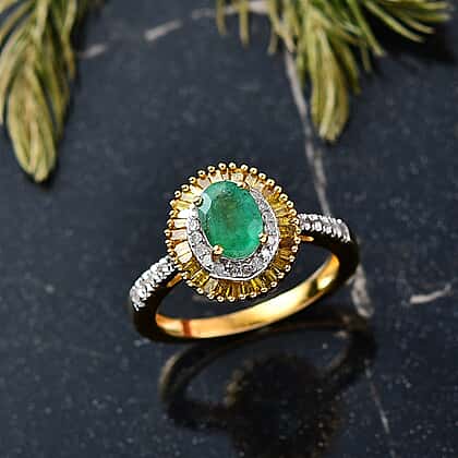 D'Joy Premium Emerald, Yellow Diamond & White Diamond Ring in 18K Vermeil Yellow Gold Plated Sterling Silver 1.14 Ct.