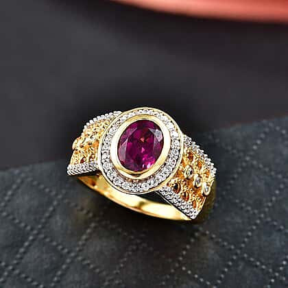 D'Joy Radiant Ember Garnet, White Zircon Main Stone With Side Stone Ring in 18K YG VermeilSterling Silver, Silver Wt.5 Gms 2.074 Ct.