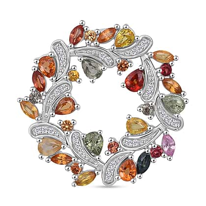 D'joy Rainbow Sapphire & White Zircon Pendant in Rhodium Overlay Sterling Silver 3.65 Ct, Silver Wt. 6.20 Gms.