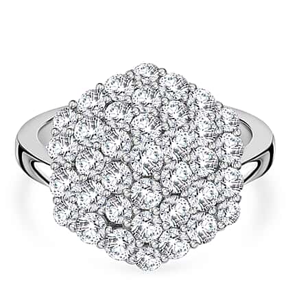 A bold sweep of sparkle catches the eye in this moissanite geometrical cluster ring, crafted for women who love statement brilliance. The ring features small rounds of moissanite, arranged in a hexagonal style, exuding sparkling brilliance, second to none. Moissanite is admired for its exceptional fire, strong durability and diamond‑like luminosity, giving this cluster bright, lively flashes from every angle. The geometric arrangement adds structure and depth, creating a sculptural look that feels modern without being overwhelming. Made of rhodium‑plated sterling silver, this ring is hypoallergenic, tarnish‑resistant and won’t turn green, offering confident all‑day wear. Choose this ring when you want an impactful sparkle set in a clean, contemporary silhouette.