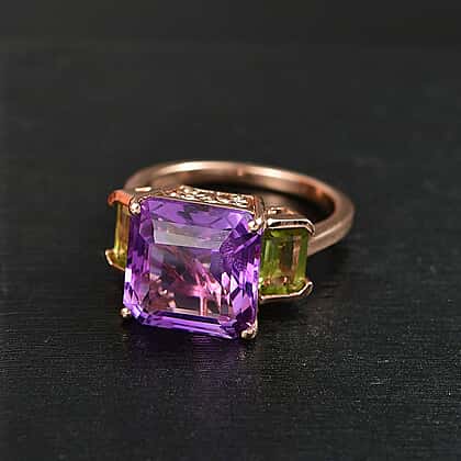 D'joy Rose De France Amethyst & Peridot Solitaire Ring in 14K Rose Gold Plated Sterling Silver 7.27 Ct.