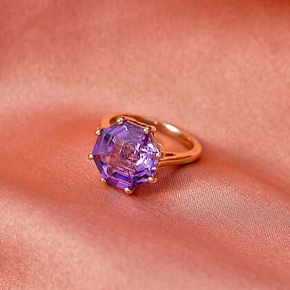 D'Joy Rose De France Amethyst Solitaire Ring in Rose Gold Plated Sterling Silver 6.40 Ct.