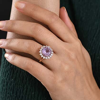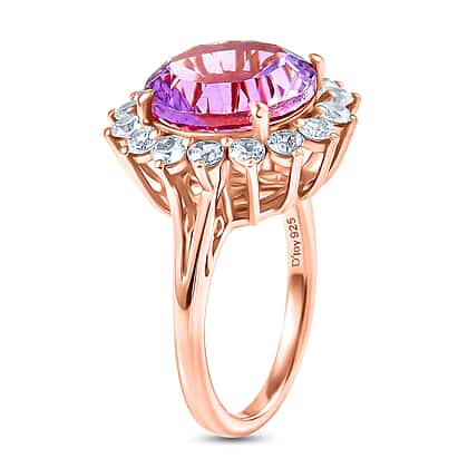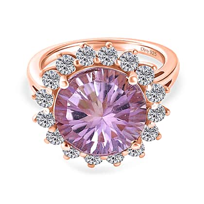 D'Joy Rose De France Amethyst & White Zircon Halo Split Shank Ring in Rose Gold Plated Sterling Silver 7.26 Ct.