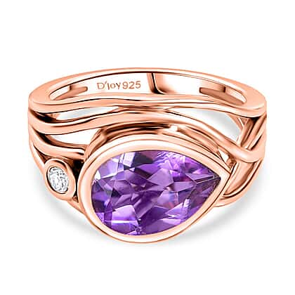 D'joy Rose De France Amethyst & White Zircon Solitaire Ring in 14K Rose Gold Plated Sterling Silver 2.56 Ct.