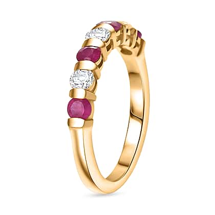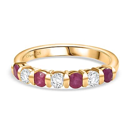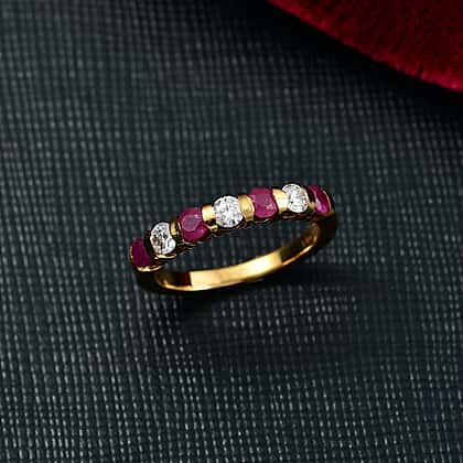 D'joy Ruby & Moissanite 7 Stone Ring in 14K Yellow Gold Plating Sterling Silver