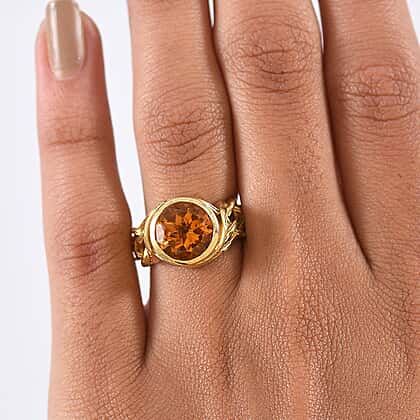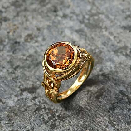 D'Joy Serra Gaucha Citrine Solitaire Ring in Yellow Gold Plated Sterling Silver 3.47 Ct.