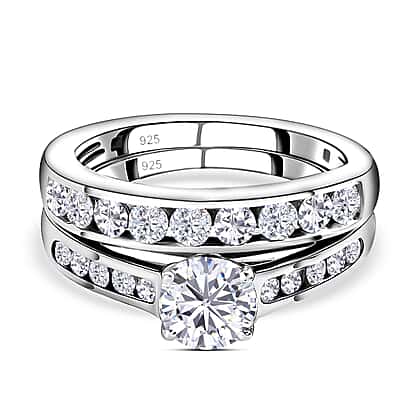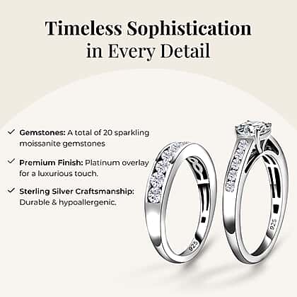 D'Joy Set of 2 - Moissanite Stackable Ring in Platinum Overlay Sterling Silver 1.59 Ct.