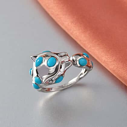 D'Joy Sleeping Beauty Turquoise, Black Spinel Adjustable Panther Ring in Rhodium Overlay Sterling Silver 2.02 Ct.