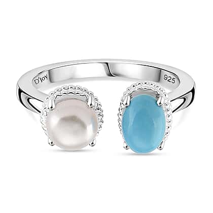 D'Joy Sleeping Beauty Turquoise & Fresh Water Pearl Ring in Rhodium Overlay Sterling Silver 1.70 Ct.