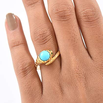 D'Joy Sleeping Beauty Turquoise & Natural Chrome Diopside Snake Ring in 18K Yellow Gold Plating Sterling Silver 1.14 Ct.