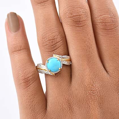 D'Joy Sleeping Beauty Turquoise Solitaire Ring in Yellow Gold Plated & Platinum Overlay Sterling Silver 1.22 Ct.