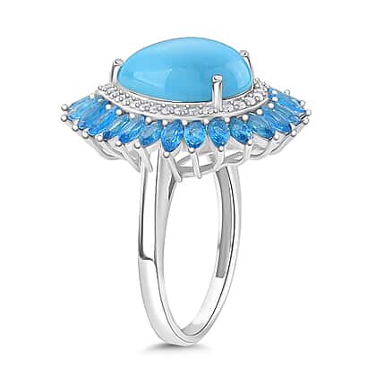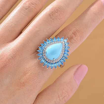 D'joy Sleeping Beauty Turquoise, White Zircon & Neon Apatite Ring in Rhodium Overlay Sterling Silver 6.96 Ct.