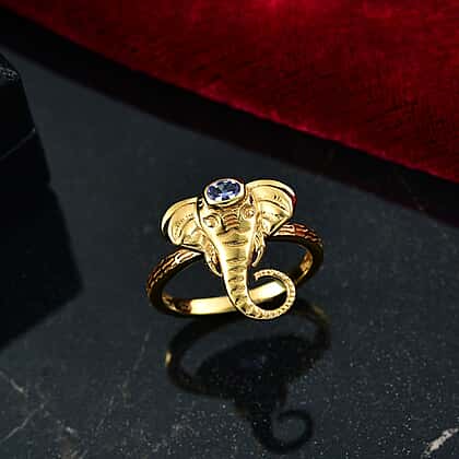 D'joy Tanzanite Elephant Ring in 18K Yellow Gold Plated Overlay Sterling Silver