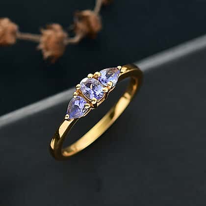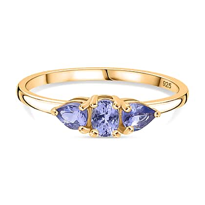 D'Joy Tanzanite Trilogy Ring in Yellow Gold Plated Sterling Silver
