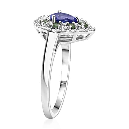 D'Joy Tanzanite, Tsavorite Garnet & Moissanite Ring in Rhodium Overlay Sterling Silver 1.22 Ct.