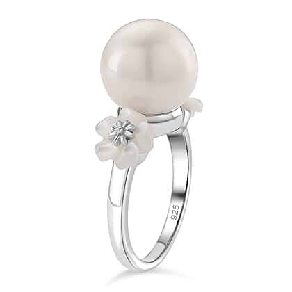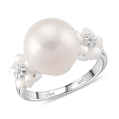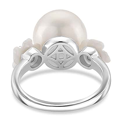 D'joy White Edison Pearl & White Mother Of Pearl Ring in Rhodium Overlay Sterling Silver 15.00 Ct.